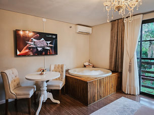 Esta romântica suíte, conta com banheira de hidromassagem. Com 25m², possui 1 cama queen size, além de comodidades como: ar condicionado, frigobar, Wi-fi, TV Smart 55", TV a cabo, banheiro e estacionamento cortesia.