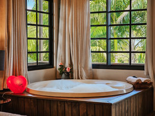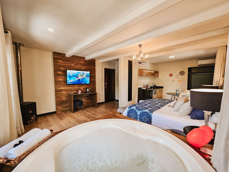 Suíte ideal para casais, conta com banheira de hidromassagem e lareira. Com 35m², possui 1 cama queen size, além de: ar condicionado, cafeteira, chaleira, micro-ondas, frigobar, Wi-fi, TV Smart 50", banheiro e estacionamento cortesia.