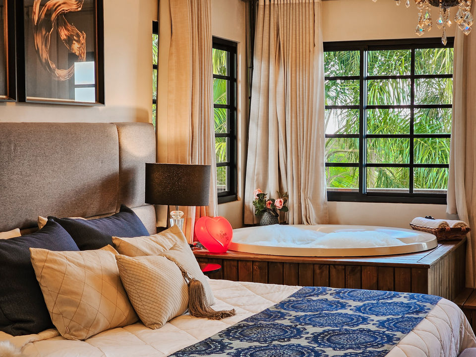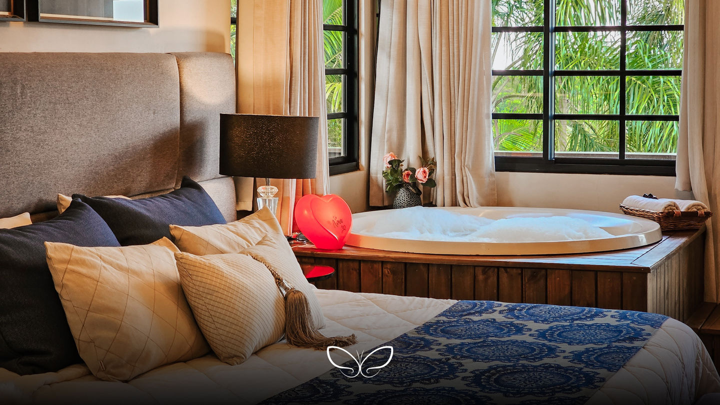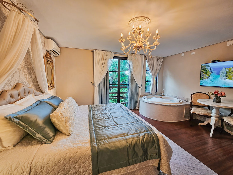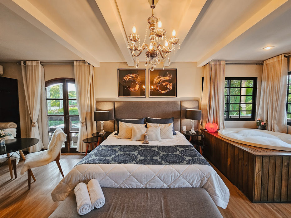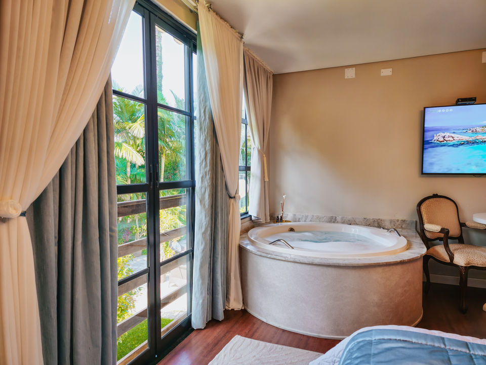 Contamos com suítes com banheira de hidromassagem, que unem o conforto e luxo. Temos diversos serviços extras para sua experiência ficar ainda mais completa. Seja para comemorar ou descansar, este é o local ideal.
