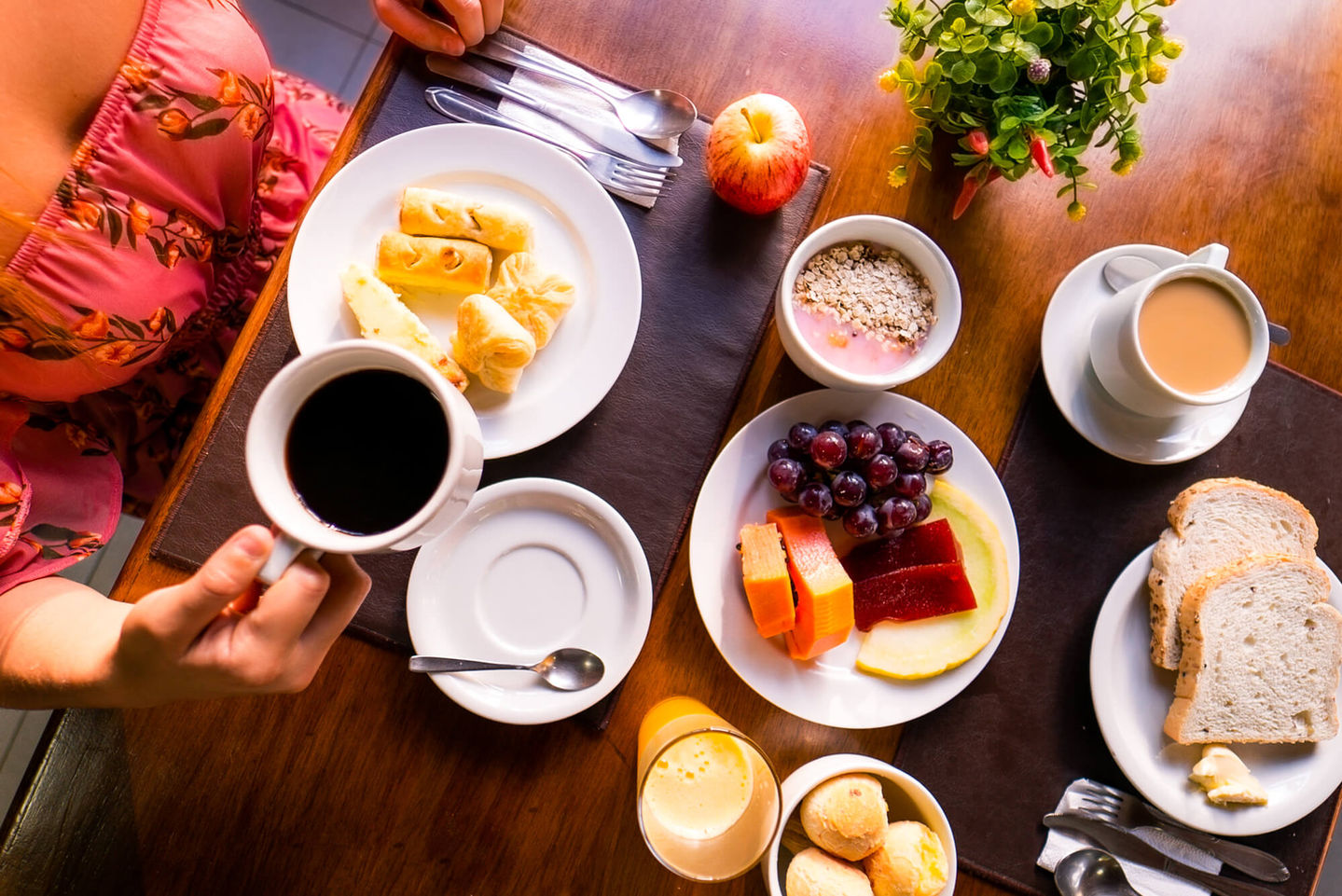 Nosso restaurante à la carte serve uma variedade de pratos, lanches e porções, seja no café da manhã, almoço ou jantar. Comida caseira, feita na hora, um conjunto de aromas e sabores de dar água na boca. O buffet de café da manhã conta com pães diversos, doces e salgados, estação de frutas, quentes e frios. E o melhor, já incluso na diária.